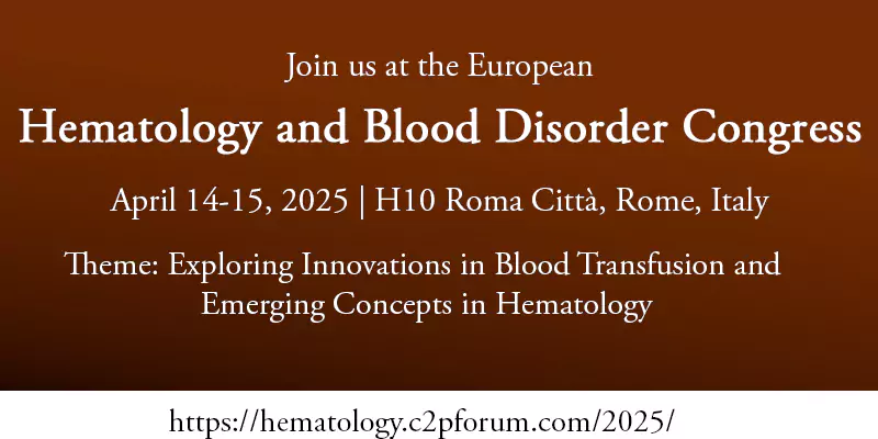 Welcome to the European Hematology and Blood Disorder Congress, scheduled for April 14-15, 2025, in the historic city of Rome, Italy. This prestigious congress bring together hematologists, oncologists, researchers, clinicians, and healthcare professionals from around the globe to delve into the latest advancements in hematology and blood disorders.